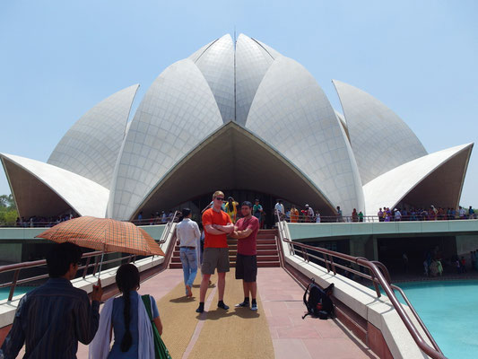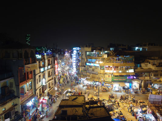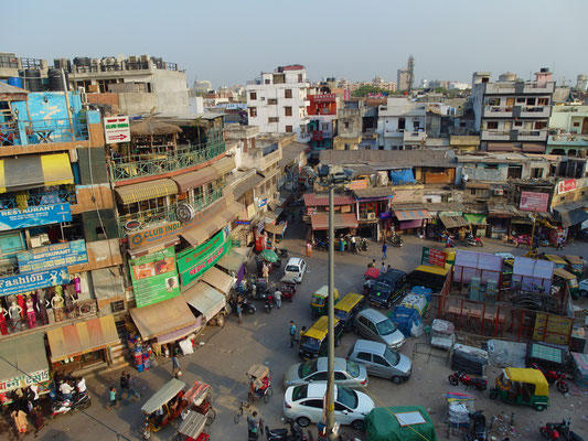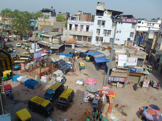 Unser erster Tag in der brütenden Hitze der Hauptstadt begann mit der fassungslosen Überforderung, sich in dem Wirrwarr und Labyrinth artig aufgebauten alten Stadtkern zu Recht zu finden. Die von ein paar sichtlich verwirrten Straßenhändler angebotenen Straßenkarten, die mehr einer Freihandzeichnung eines Kindes ähnelten, halfen dabei einem genauso viel weiter wie die Antworten der Einheimischen, wenn man sie nach dem Weg fragte. Denn über das indische Volk haben wir während der nun mittlerweile drei Wochen „Eines“ ganz genau gelernt: "Einen Gefallen, nur des Gefallen wegen, tut dir hier niemand oder zu mindestens äußerst selten jemand“. Die Devise hieß also: „Hinterfrage jede so verlockende Hilfe und rechne mit einem Hinterhalt". Gemäß diesem Motto ist es auch nicht verwunderlich, dass sowohl der Weg aus dem Stadtkern, als auch die Suche nach einem bestimmten Gewürzmarkt jedes Mal in einem Geschäft eines Freundes, Verwandten oder sonst wem endete und niemals am eigentlichen Ziel. Wie heißt ein weiteres Sprichwort so schön "Verlass dich auf Andere und du bist verlassen". Nirgendwo trifft dies mehr zu als in Indien, aber man gewöhnt sich bekanntlich an Alles und so bahnten wir uns ein weiteres Mal einen Weg durchs Chaos. Zwar wurde so selten der kürzeste Weg gewählt, aber man konnte die Atmosphäre der Städte aufsaugen, die Blicke schweifen lassen und das „Hier und Jetzt“ ohne Einschränkung genießen. Neben dem Zurechtfinden in der quirligen Atmosphäre, die sinnbildlich für die Überbevölkerung steht, klapperten wir zu Fuß und einmalig mit einem Lokalbus die Sehenswürdigkeiten in unmittelbarer Nähe ab. Dabei zerrte die staubige und trockene Luft sehr an meinen Kräften und auch die Sonne kannte kein Erbarmen. Es herrschten weiterhin Temperaturen um die 50°C bei einer Luftfeuchtigkeit im unteren zweistelligen Bereich.