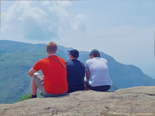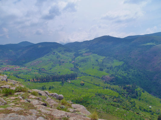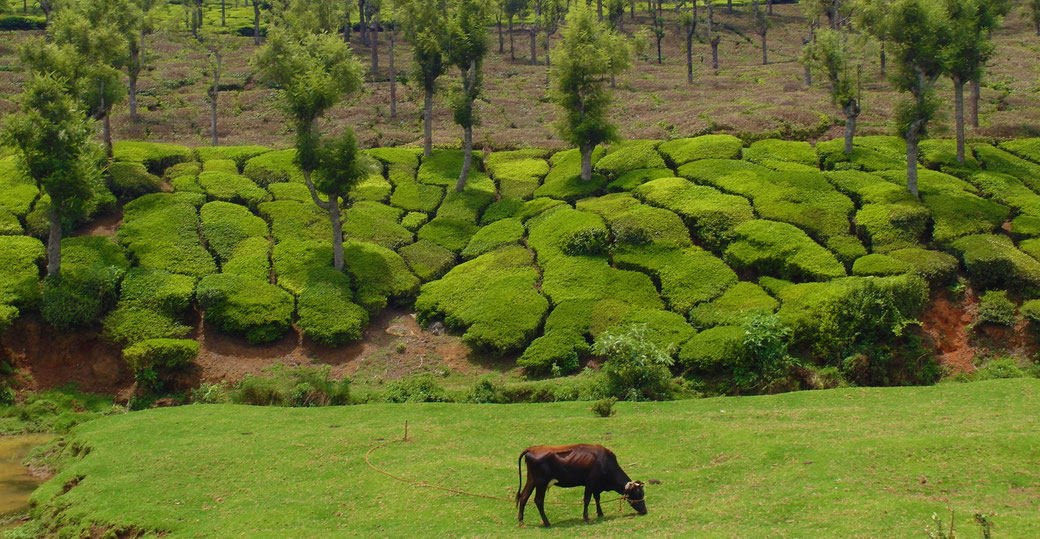 Nachdem sich ausgiebig gestärkt wurde und man sich von den faszinierenden Kindern, die uns nicht von der Seite weichen wollten, verabschiedeten, bestiegen wir den höchsten Berg in der Umgebung. Von 2800 Höhenmetern aus, hatte man am Gipfel einen wundervollen 360-Grad-Blick über die Bergidylle und nutzte die Verschnaufpause für ein paar beeindruckende Bilder. Die Natur war so groß und ich wirkte so klein. Auf einem rauen Granitfelsen stehend und mit dem Blick stets über die grünen Teeplantagen schweifend, fühlte ich mich plötzlich nicht mehr so fremd. Ich fühlte mich wohl! Atmete tief ein und wieder aus und genoss die kühle Luft. Was war passiert? Noch vor einer Stunde wurde ich von einem sehr befremdlichen Familiensystem in Kenntnis gesetzt und auch die Tage zuvor waren zwar ausnahmslos interessant und sehenswert, versprühten aber keineswegs das Gefühl von Behaglichkeit und Wärme. War ich vielleicht endlich in Indien angekommen oder flüchtete ich angesichts des Bergpanoramas nur ein weiteres Mal vor der Realität? Zu dem Zeitpunkt wirklich wissen konnte ich es nicht, doch rückblickend zähle ich diesen Moment zu meinem mentalen indischen Anfang, an dem ich mich erstmals so richtig auf das „Neue“ einlassen konnte. Mein Inneres schien in Indien angekommen zu sein und konnte die Erlebnisse erstmals vernünftig verarbeiten, anstatt nur von ihnen erschlagen zu werden. Nachdem der Moment auf Bildern festgehalten wurde und ich genügend Zeit für mich selbst fand, gingen wir zurück bergab und wurden Zeuge davon, was es heißt, wenn ein Bulle böse wird. Auch wenn die Situation gut ausging, hatte ich beim Blick in die weit aufgerissenen Augen des Bullen auf offener Wiese ein sehr mulmiges Gefühl.