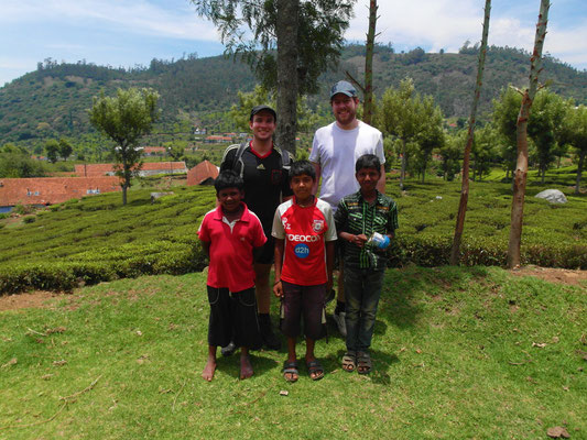 An spielenden Kindern und grasenden Rindern vorbei, erreichten wir am frühen Nachmittag mitten in den Teeplantagen ein kleines Dörfchen ohne Strom, ohne Straßenzugang und ohne jegliches andere Anzeichen von Zivilisation. Wir wurden sehr herzlich empfangen und waren besonders für die kleinen Kinder etwas ganz Besonderes. Ein paar mitgebrachte Süßigkeiten war für sie Anlass genug in pure Freude auszubrechen. Man konnte die Begeisterung für die Mitbringsel förmlich in ihren Augen sehen. Mit welch‘ einer Kleinigkeit man kleine Kinder eine Freude bereiten kann, ist fantastisch. Was allerdings für uns als eine Selbstverständlichkeit angesehen wird, steht in Indien keineswegs auf der Tagesordnung. Schokolade ist für die meisten purer Luxus.