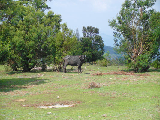 Am zweiten Tag begab man sich auf Trekking-Tour unter privater Führung durch die wundervollen Berge, vorbei an Teeplantagen und kleinen Dörfern. Der einen Abend zuvor angesprochene Guide mittleren Alters holte uns gegen 8Uhr morgens an der Pension ab und fuhr mit uns im Lokalbus erst einmal eine halbe Stunde aus der quirligen Kleinstadt in die freie Natur hinaus auf 2200m. Meine Wanderschuhe kamen bei diesem Tagesausflug erstmals zum Einsatz und überzeugten mich sehr eindrucksvoll davon, dass die Mitnahme festen Schuhwerks eine sehr weise Entscheidung war. Über Stock und Stein ging es durch einen Kiefernähnlichen lichten Wald und über Weiden, auf denen zahlreiche Bullen grasten. Eine atemberaubende Naturkulisse und eine bis jetzt unentdeckte Seite Indiens. Die zahlreichen nützlichen Informationen über das Leben auf dem Land vom Guide machten den Ausflug dabei noch sehenswerter.