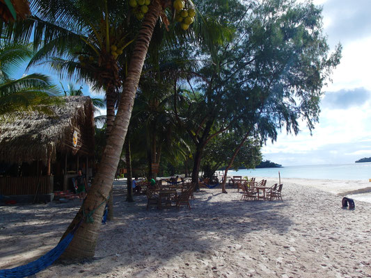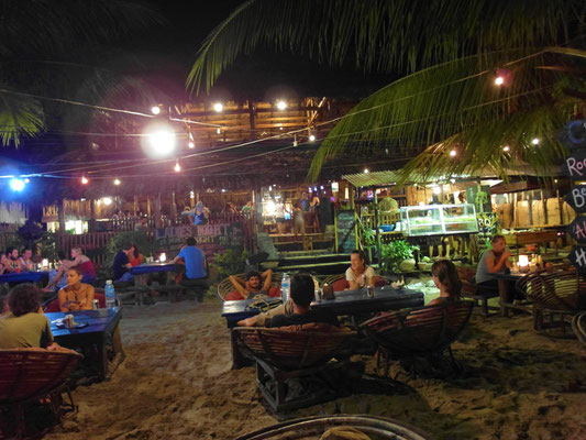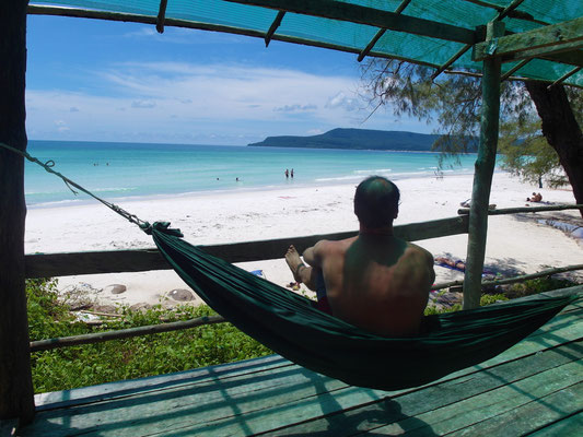 Die Tage wurden überwiegend mit Gammeln unter Palmen am Strand oder auf einer Liege im zweiten Stock der Bar mit Blick auf den unendlichen Ozean verbracht. Unterbrochen wurde die Gelassenheit lediglich von sporadischen Entscheidungen etwas Beach-Volleyball zu spielen. Ich genoss die tropische Atmosphäre und fand ausreichend Zeit die Erlebnisse aus Laos und Phnom Penh zu reflektieren, auch wenn sie ein wenig meine Stimmung drückten. Doch insgesamt betrachtet hätte es keinen besseren Ort dafür geben können. Das paradiesische Feeling bot einen hinreichenden Rückhalt sich von den deprimierenden Tatsachen nicht mitreißen zu lassen.
