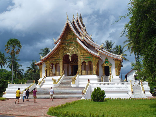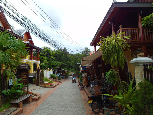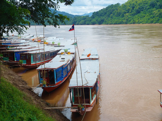 Mitten in der Nacht um drei Uhr kamen wir übermüdet in der 50.000 Einwohner Stadt Luang Prabang an, suchten uns das erstbeste Guesthouse aus, welches offen zu haben schien und holten den längst überfälligen Schlaf nach. Gegen 10 Uhr fielen wir allerdings viel zu früh angesichts der steigenden Temperatur aus den winzigen Betten und erkundschaften die Stadt direkt am mächtigen, mindestens 500 Meter breiten, Mekong. Sie lud zwar mit ihrer malerischen und gemütlichen touristischen Atmosphäre zum Verweilen ein, aber Sehenswürdigkeiten gab es so gut wie keine. Die meisten Touristen nutzen Luang Prabang als Startpunkt für Dschungelaktivitäten der unterschiedlichsten Art und umgehen den total unentwickelten Norden des Landes...
