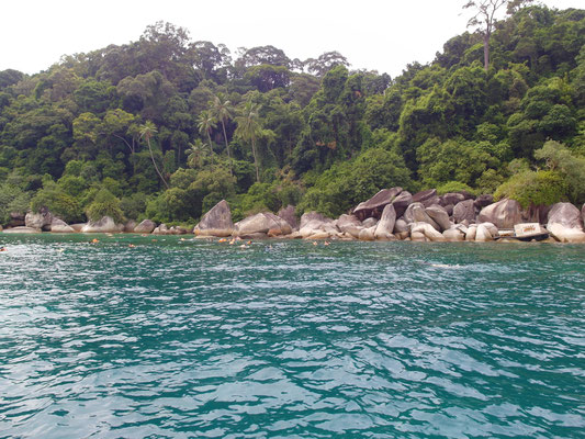Mit dem letzten muskulären Andenken von der Tortur des Taman Negara, erreichten wir am fortgeschrittenen Nachmittag die kleine, aber gepflegte Hafenstadt Kuala Besut im Nordosten des Landes. Nach ein paar planlosen Minuten an der Busstation fanden wir gerade noch rechtzeitig den Fähranleger und kauften uns jeweils ein Hin-und Zurück-Kombi-Ticket, bevor das letzte Speedboot ablegte. Als wir unser knallgelbes, zirka acht Meter langes Speedboot mit blauer Stoffüberdachung betraten, staunten wir nicht schlecht als sich unsere Blicke auf die zwei jeweils 250PS starken Außenborder fokussierten. Spätestens jetzt wunderten wir uns über die Tragepflicht der Rettungswesten nicht mehr. Mit brachialer Gewalt und ohrenbetäubenden Lärm schossen wir in kürzester Zeit über die Wasseroberfläche. Bei jeder noch so kleinen Welle, hob unser Gefährt für einige Sekunden ab, schien fliegend weiter zu beschleunigen und schlug, jeweils begleitet von einem "Wooooooh" der zahlreichen anwesenden Frauen, bretthart auf der Wasseroberfläche wieder auf. Während eine Gruppe europäischer Backpacker auf der 30-minütigen Fahrt eine Flasche Rum vollständig leerten, genossen Björn und ich mit flauem Gefühl im Magen an der Spitze des Bootes die rasante Fahrt.