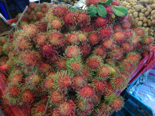 Am nächsten Tag wurden wir nach dem Frühstück um neun Uhr morgens mit einem Jeep abgeholt und es ging erst zu einer Orchideen- und Schmetterlingsfarm, die man sich eigentlich hätte sparen können, da wir in Singapur bereits eine viel Schönere gesehen hatten. Ehe man noch kurz an einem Markt anhielt, um die letzten Einkäufe zu erledigen, kamen wir gegen Mittag am Zielort mitten im Dschungel an. Bevor es aber schließlich losgehen konnte, hatte man noch ein kurzes Lunch, serviert auf Bananenblättern.