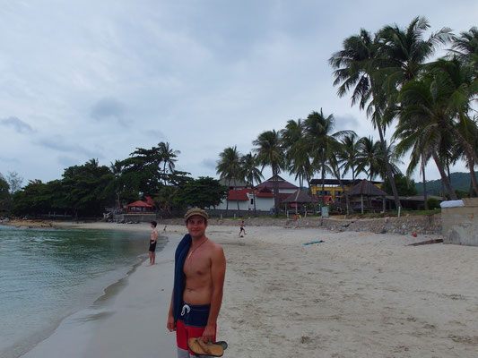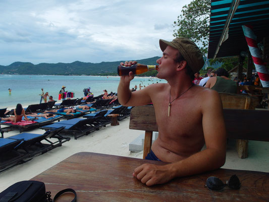 Der anschließende Tag wurde mit ausschlafen, ausnüchtern und spätfrühstücken begonnen. Während Björn dem Alkohol Tribut zollen musste und zum Schlafen zurück aufs Zimmer ging, verbrachte ich den restlichen Tag mit Nicolle am Strand! Baden, in der Sonne liegen, rumwitzeln, sich über die Fotos vom Vorabend amüsieren und ausnüchtern stand auf dem Plan. Gemeinsam genossen wir die Zeit am Strand und im Meer. Am Nachmittag war dann aber die Zeit auch wieder reif für einen Cocktail. Es folgte ein Zweiter, als es plötzlich leicht anfing zu regnen und wir unter eine Palme flüchteten. Koh Samui ist halt eine kleine Partyinsel und ich passte mich den Gewohnheiten an. Wie ihr euch bestimmt vorstellen könnt, fiel mir dies nicht sonderlich schwer.