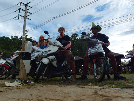 Nach einem ausgiebigen Frühstück mit Viola und den etwas merkwürdigen Israeli begaben wir uns ruhigen Schrittes zu dem Rollerverleih, in dem bereits am Vortag die Skooter reserviert wurden. Ich hatte bereits in Indien an der Küste Goas meine ersten Erfahrungen mit einem Roller gemacht, muss aber gestehen, dass es jedem Fahrradfahrer leicht fallen sollte ein solches leichtmotorisiertes Zweirad zu fahren. Nichtsdestotrotz schien dies nicht auf jeden von uns zu zutreffen. Denn noch bevor den Ort auch nur verlassen konnten, fuhr unser israelitischer Zeitgenosse rückwärts gegen Björn sein Gefährt und brach sich beim anschließenden Umkippen den Rückspiegel ab. Auch die weiteren Fahrversuche endeten immer wieder mit Kollisionen, weshalb nach nur einer halben Stunde für ihn feststand, das Bike lieber wieder abzugeben, anstatt uns zu begleiten. Meiner Meinung nach auch eine kluge und weise Entscheidung zum Schutze aller Beteiligten.